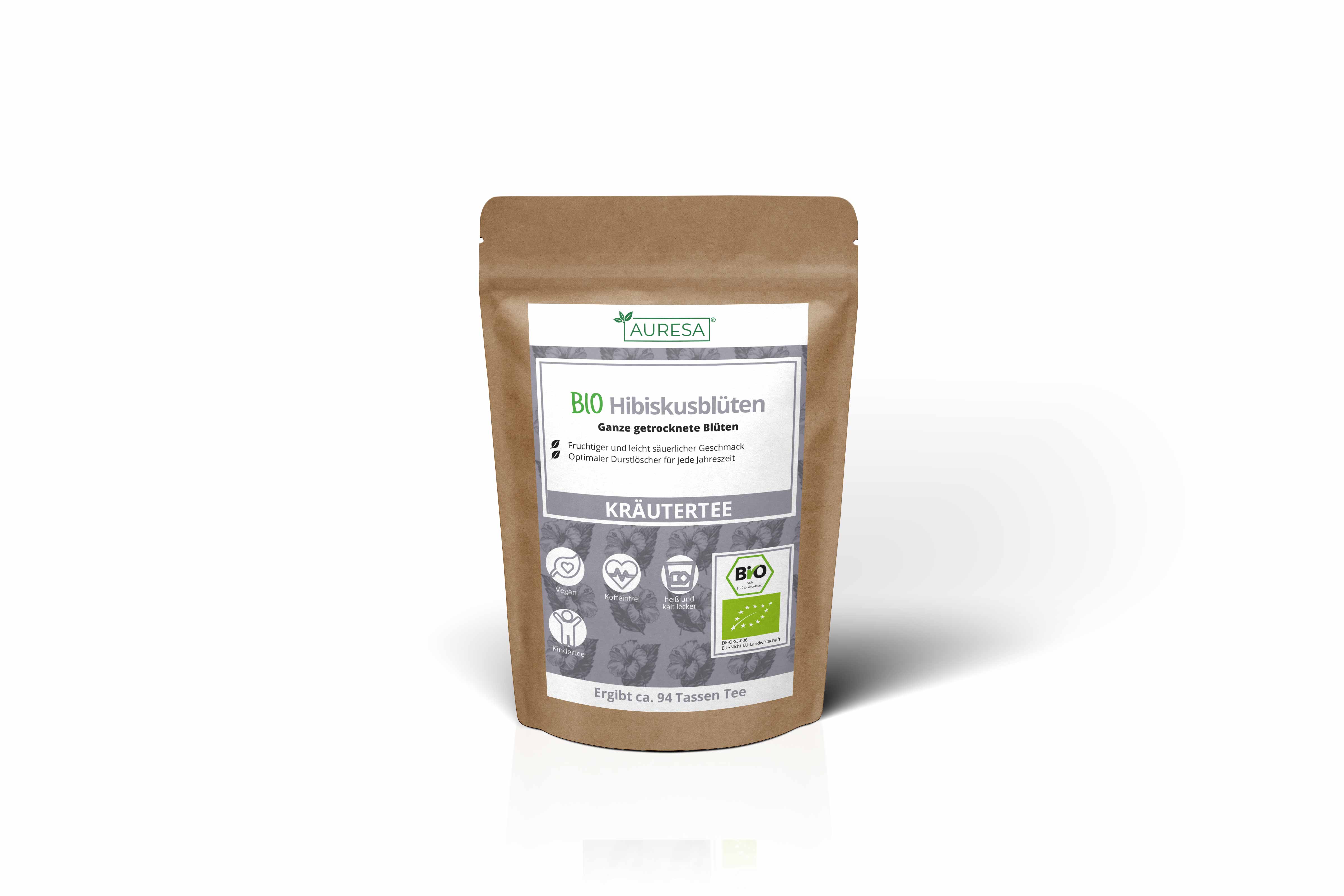 The loose tea is packaged in three different versions with different amounts of content, which can be viewed under "Amount". 1. Doypack (stand-up pouch) The stand-up pouches have a tear notch on both sides so that the weld that protects the tea can be easily torn. In addition, all doypacks are equipped with a resealable pressure lock. The stand-up pouches are food-safe, stable and odorless and tasteless. 2. glass High-quality storage jars with cork closures for protected storage and refilling. The tea glasses are hygienic, easy to care for and dishwasher safe and have a diameter of 70 mm (Ø 39 mm filling area) and 130 mm height. 3. Tubular bag The sales quantity 1000g is sent in a non-resealable tubular bag.