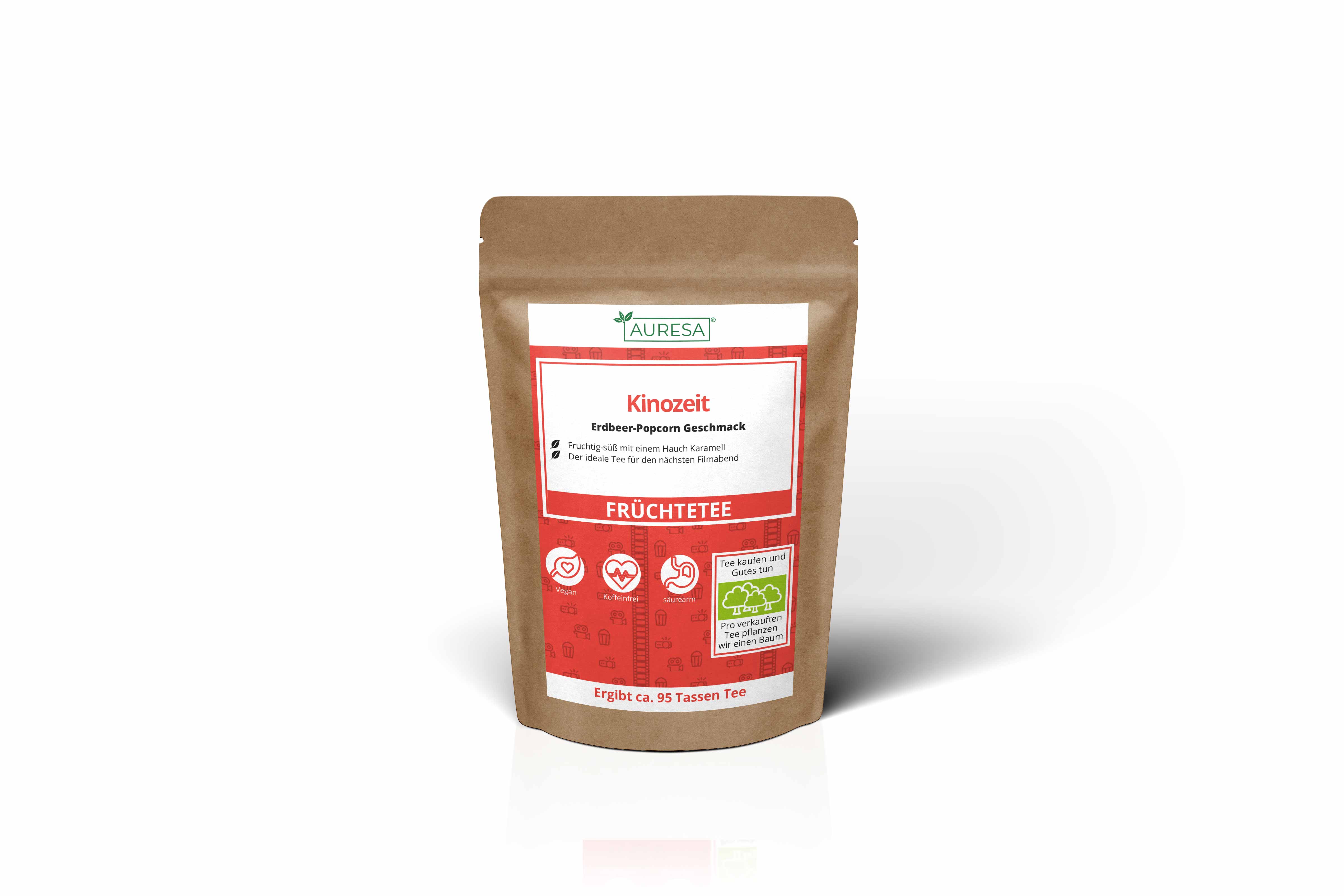 apple bits (apple, acidifier: citric acid), candied papaya bits (papaya, sugar), raisins, beetroot bits, flavouring, strawberry slices(4%), Popcorn (corn, rape oil)(3%)Tea preparation